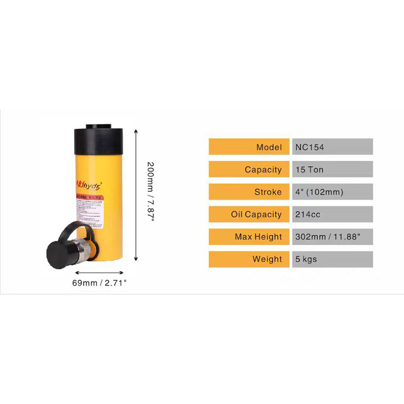 NC154 15Ton 4 Inch Single Acting Hydraulic Cylinder